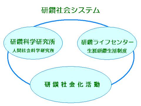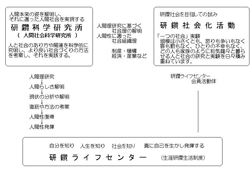 家庭生活、学問・芸術、政治・経済、機構・制度の考案や運営など、凡ゆる生活行動が、その目的に集注し、一致協力して仲良く前進する 研鑽社会システム を目指しています。